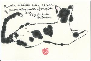 Here’s another etegami, same pose from Moomin… quote from Tove Jannson, the MoominTroll cartoon author.