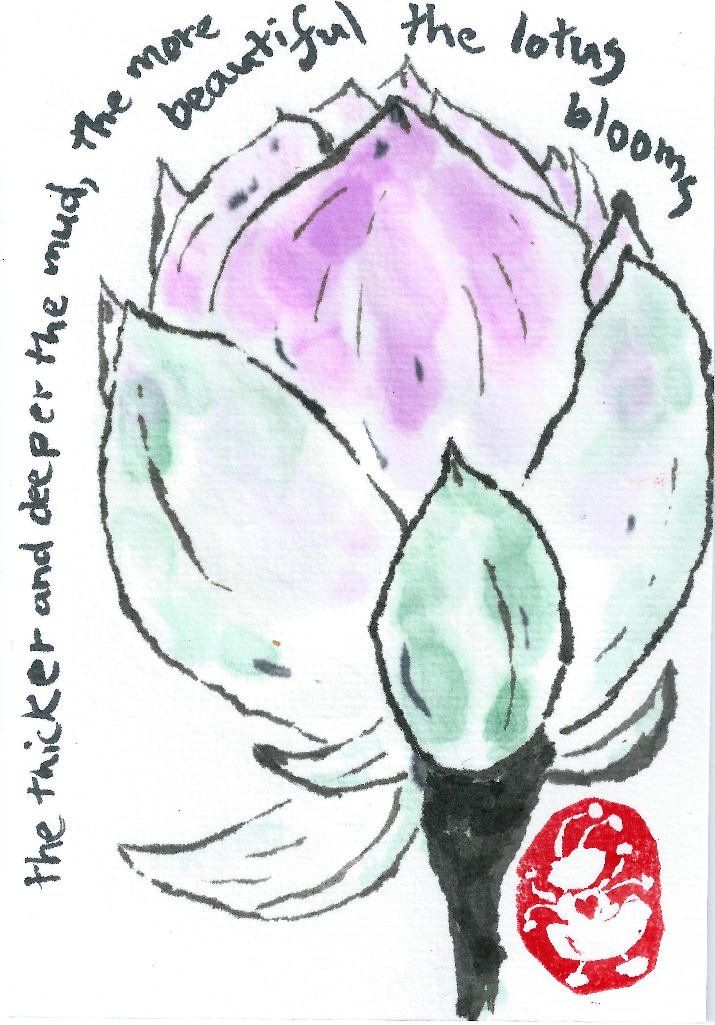 A lotus flower for my sister, with a quote from What’s Love Got to Do with It?
