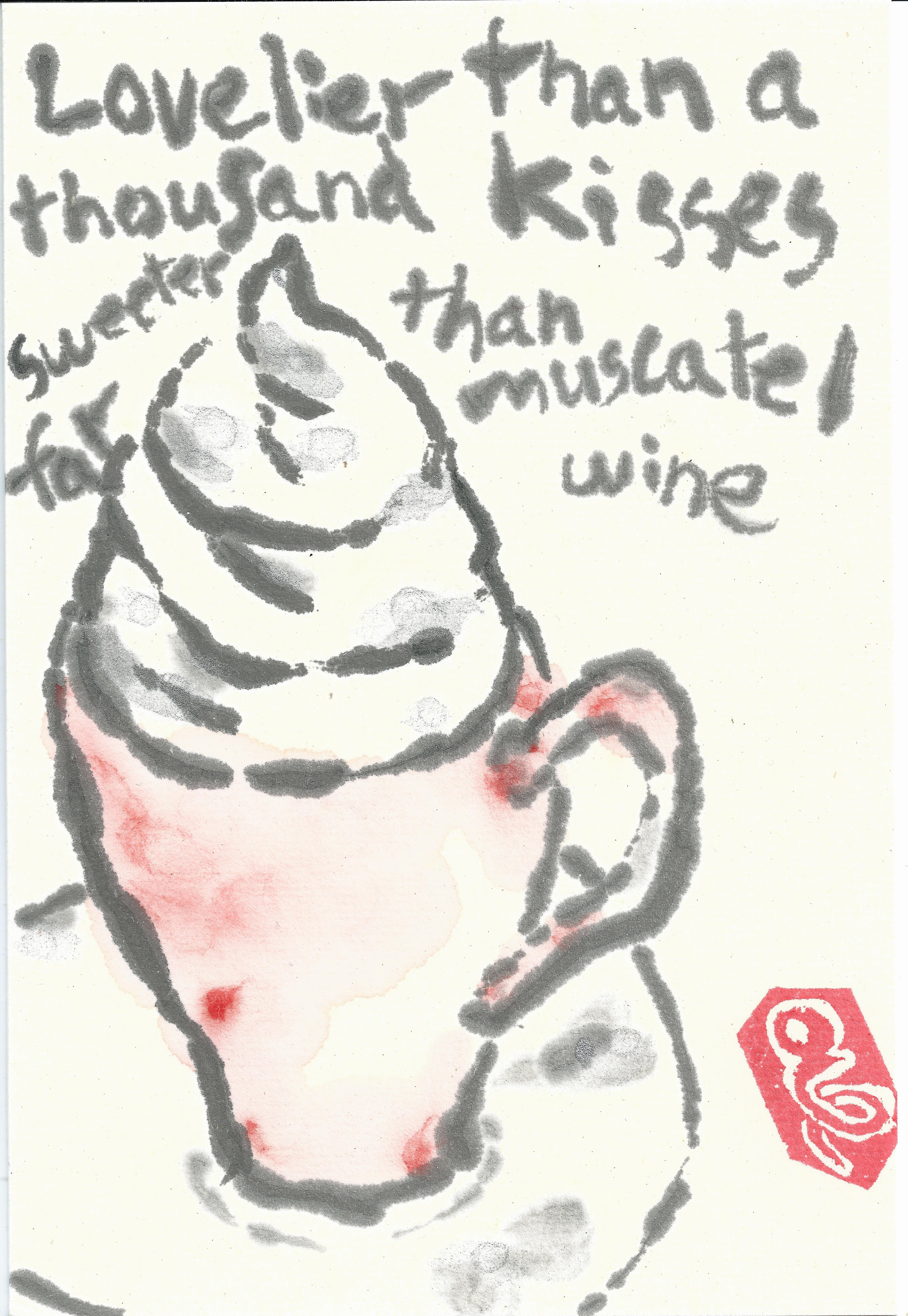 Caffe con panna is a weakness. Espresso and whipped cream, yes please, no dessert is needed. Maybe the whipped cream on my coffee at Bohem wasn’t quite that frothy as it looks in the etegami here but it tasted decadent.