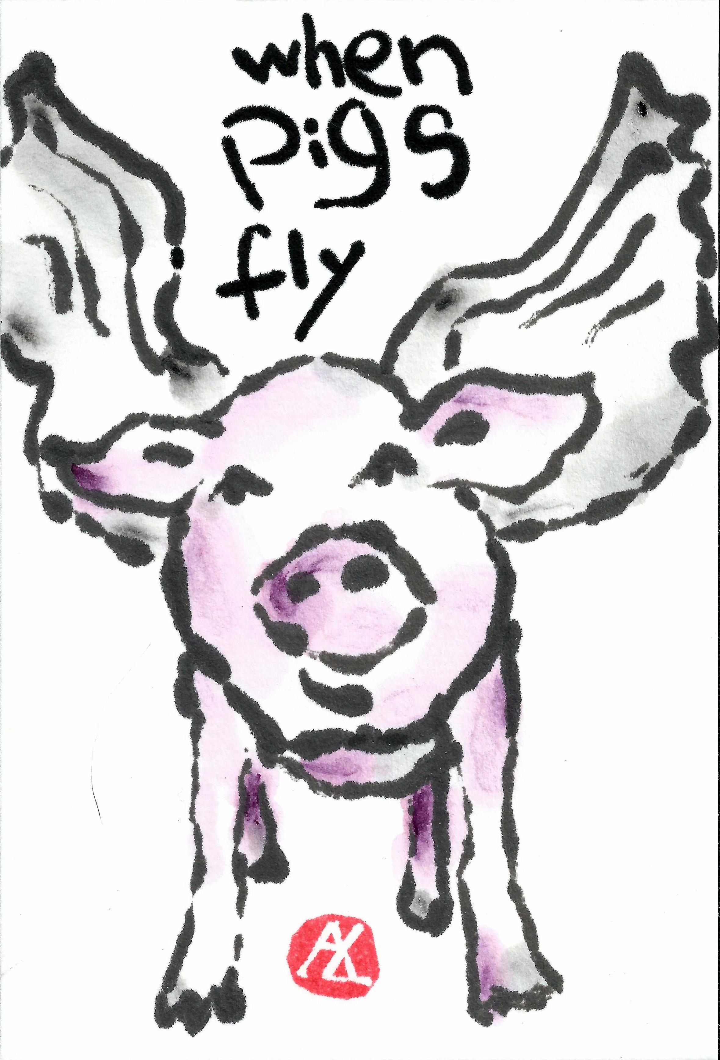 My dad always responded to ridiculous requests, and even not so ridiculous requests, with the phrase “when pigs fly.” I’ll send one of the many flying pig cards to my mom.