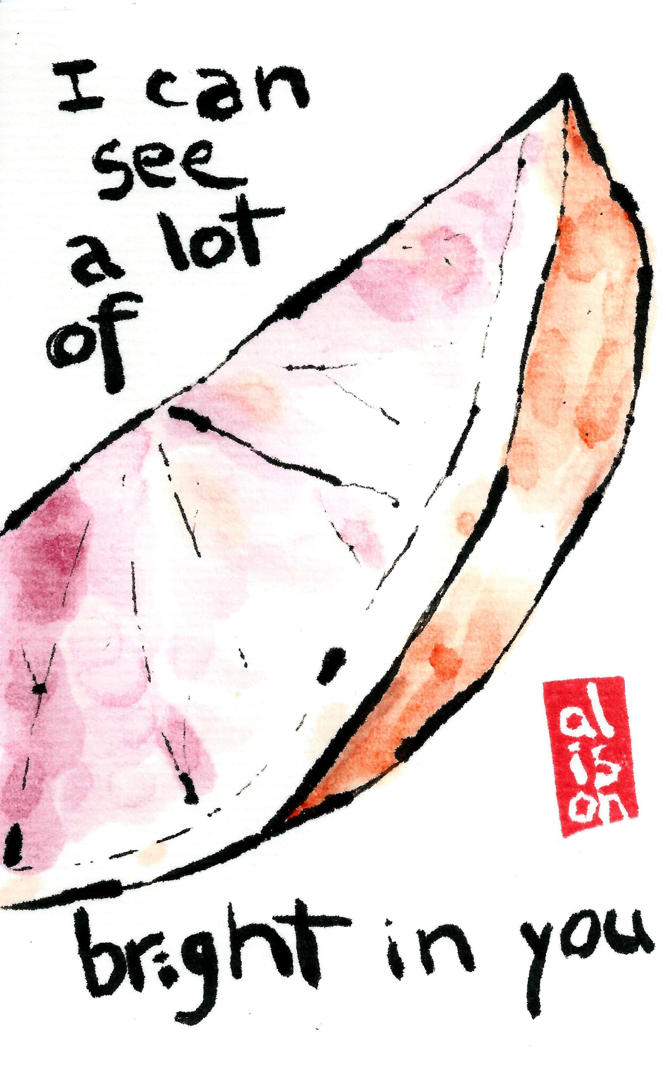 A sliver of one last blood orange, with a sliver of a lyric from Sufjan Stevens, “I can see a lot of bright in you,” from the song, “That dress looks nice on you.”