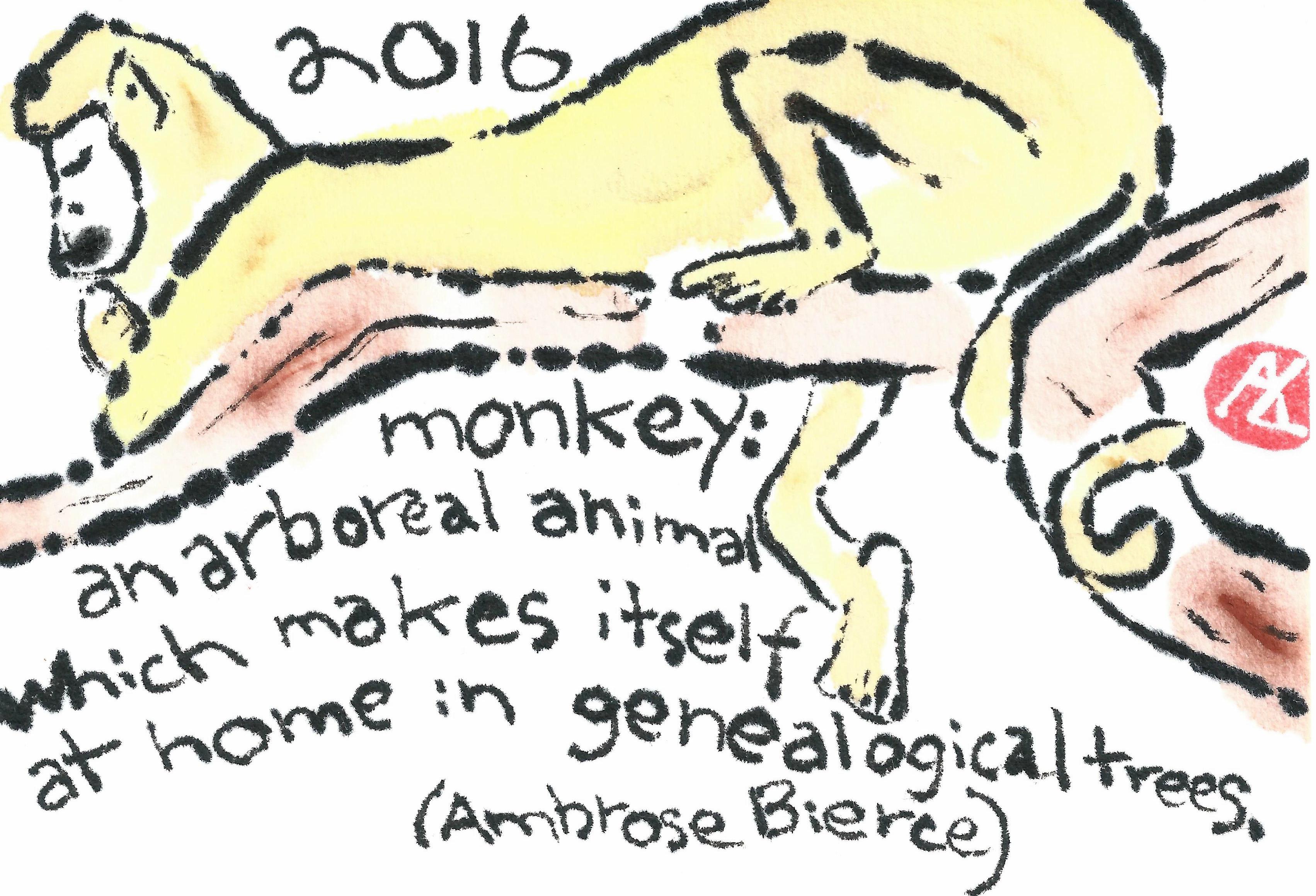 MONKEY, n. An arboreal animal which makes itself at home in genealogical trees.