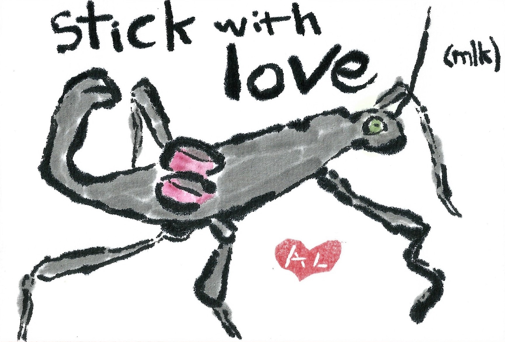 I post this etegami with some trepidation that the visual pun of a stick insect might seem to make light of the powerful words of Dr. King. I hope that it is not taken that way.