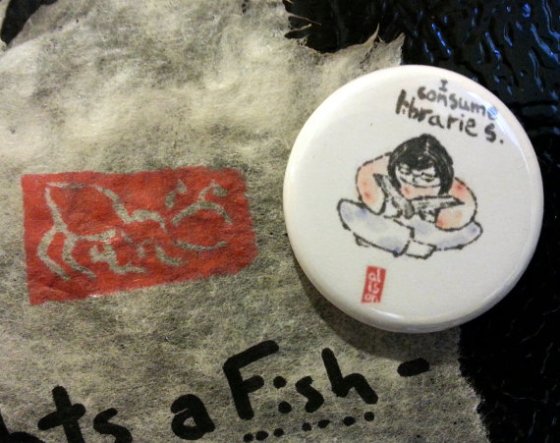 Another library-themed etegami, with words drawn from David Foster Wallace’s Infinite Jest: ‘I read,’ I say. ‘I study and read. … More