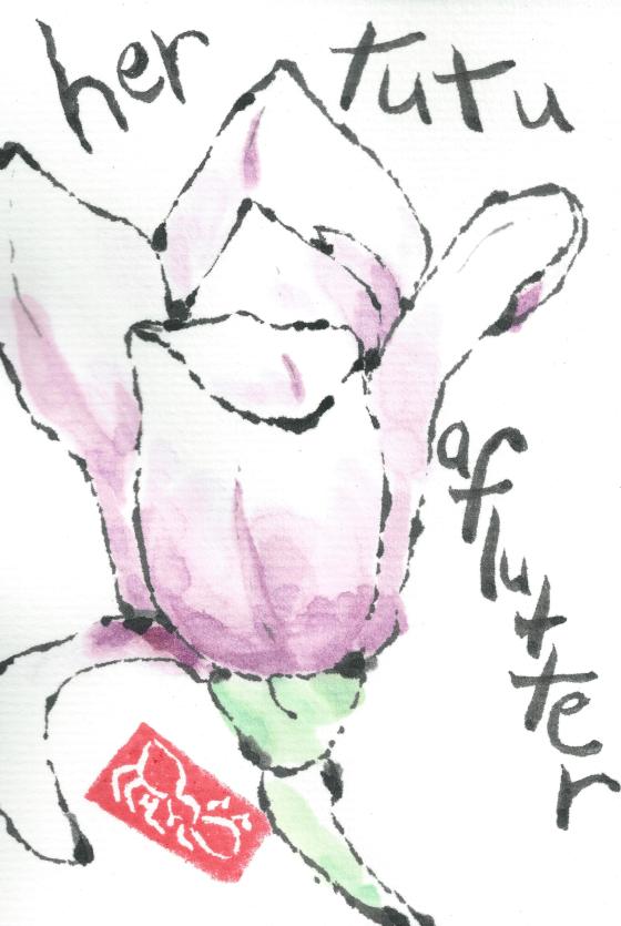 A little magnolia flower, inspired by a poem I read on this blog, Leaf and twig: Her tutu a flutter … More