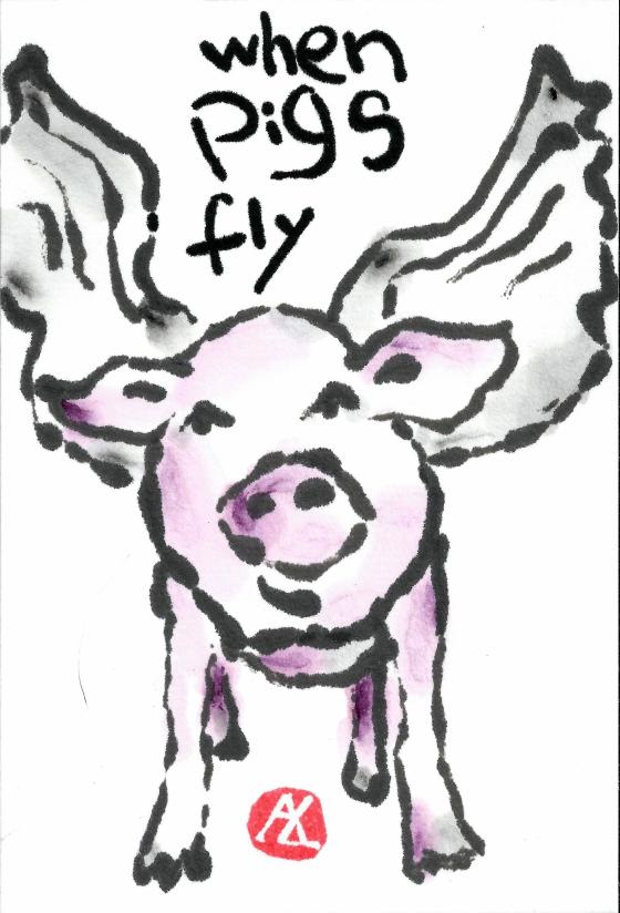 When Pigs Fly A happy pink little pig with wings, with the words “When pigs fly” I haven’t had a chance to paint … More